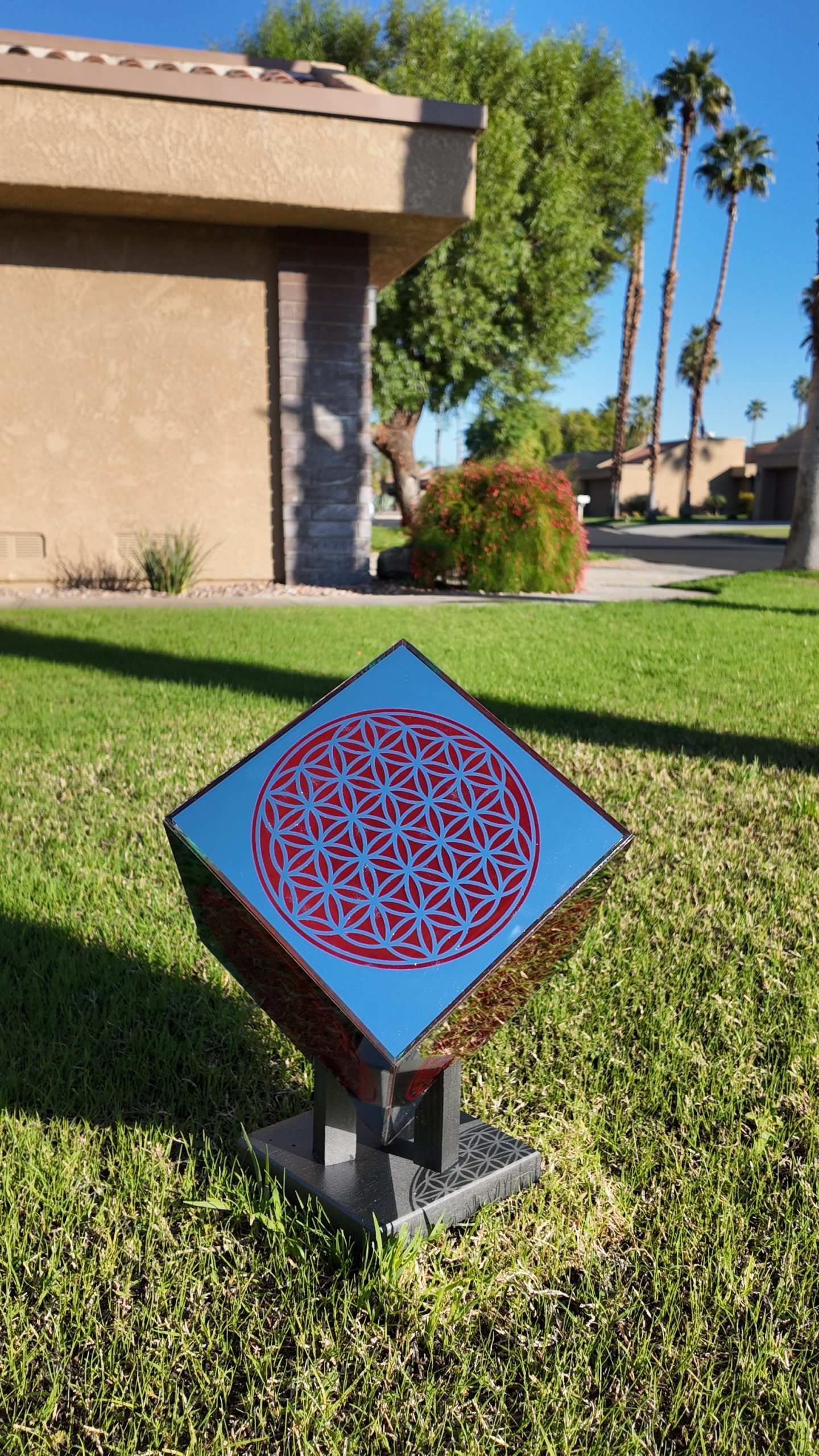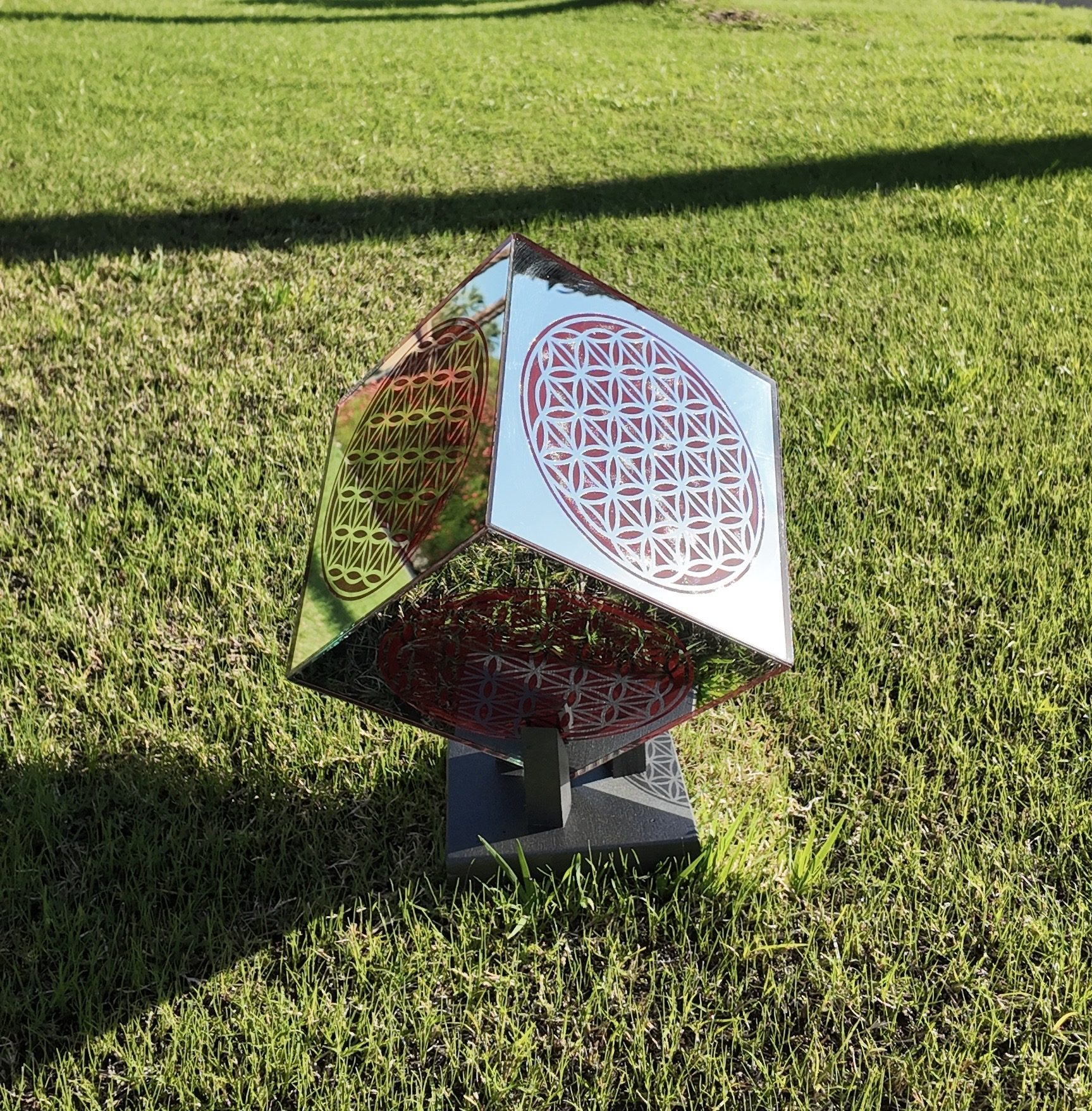Genesis Cube with Flower of Life Design Mirror Sculpture