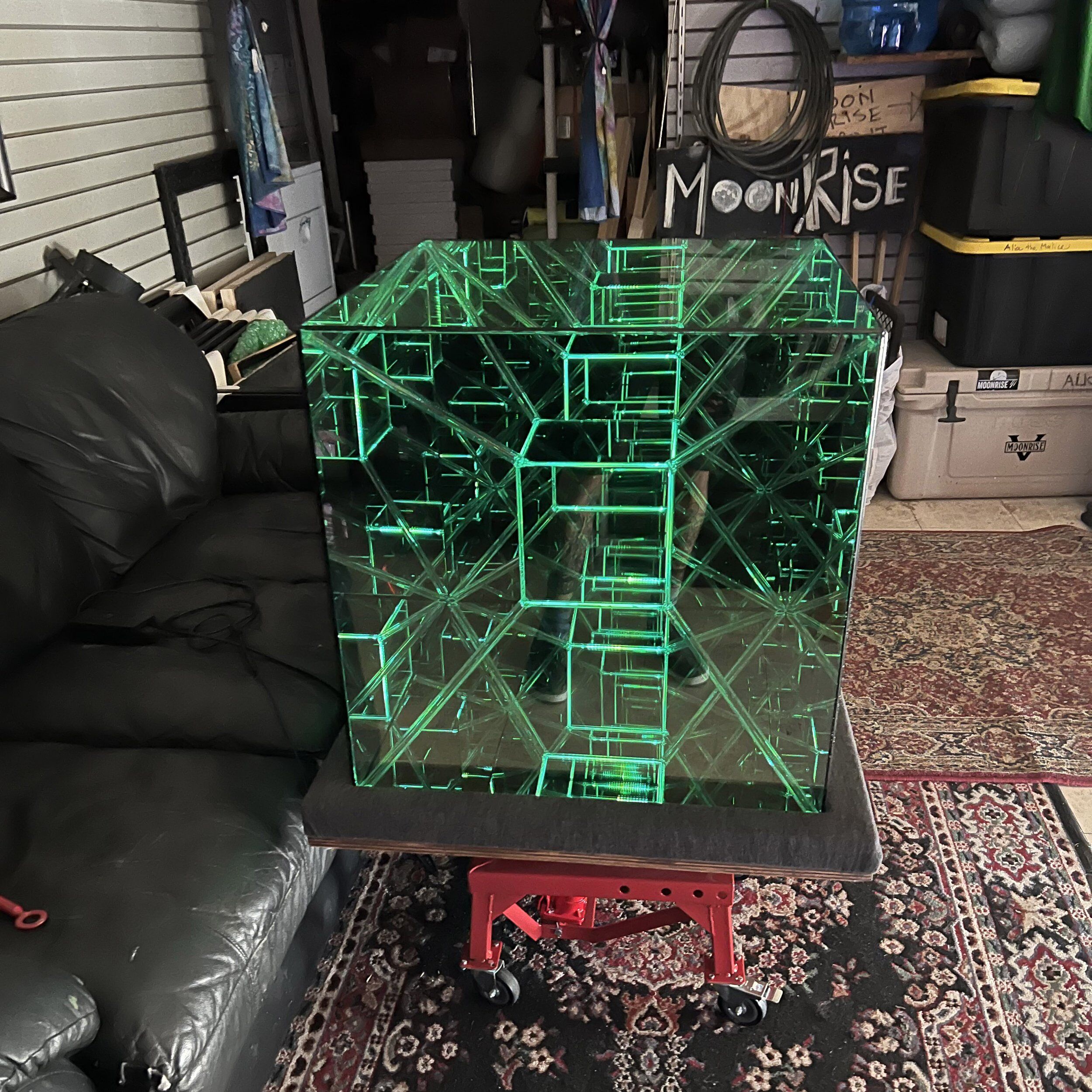 Created by Nicky Alice, the first and only artist to bring the Tesseract into physical form (first realized in 2018), each sculpture is built using artist-developed, patent-pending mirror systems and specialty mirror glass engineered specifically for dimensional clarity.